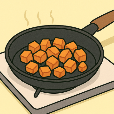 - 약불로 팬에 버터 녹인 뒤 고구마를 앞뒤로 노릇하게 구움