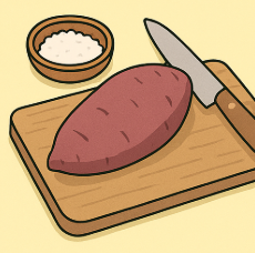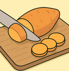 - 고구마를 먹기 좋은 크기로 썰기
