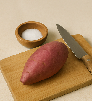 | 손질 | 고구마를 깨끗이 씻고 굵은 부분은 반으로 자르기 | 두께가 일정해야 익는 속도도 비슷해집니다 |