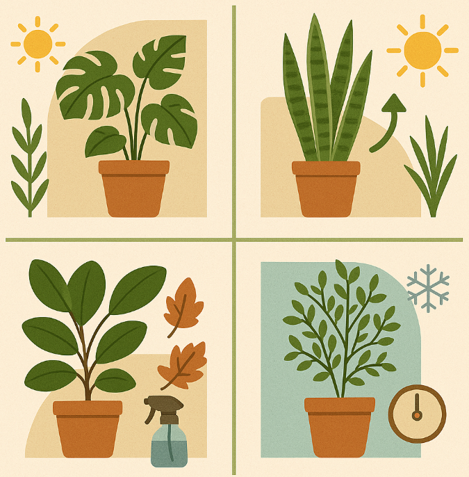 - 몬스테라: 계절 변화에 강하고 성장 속도가 안정적.
